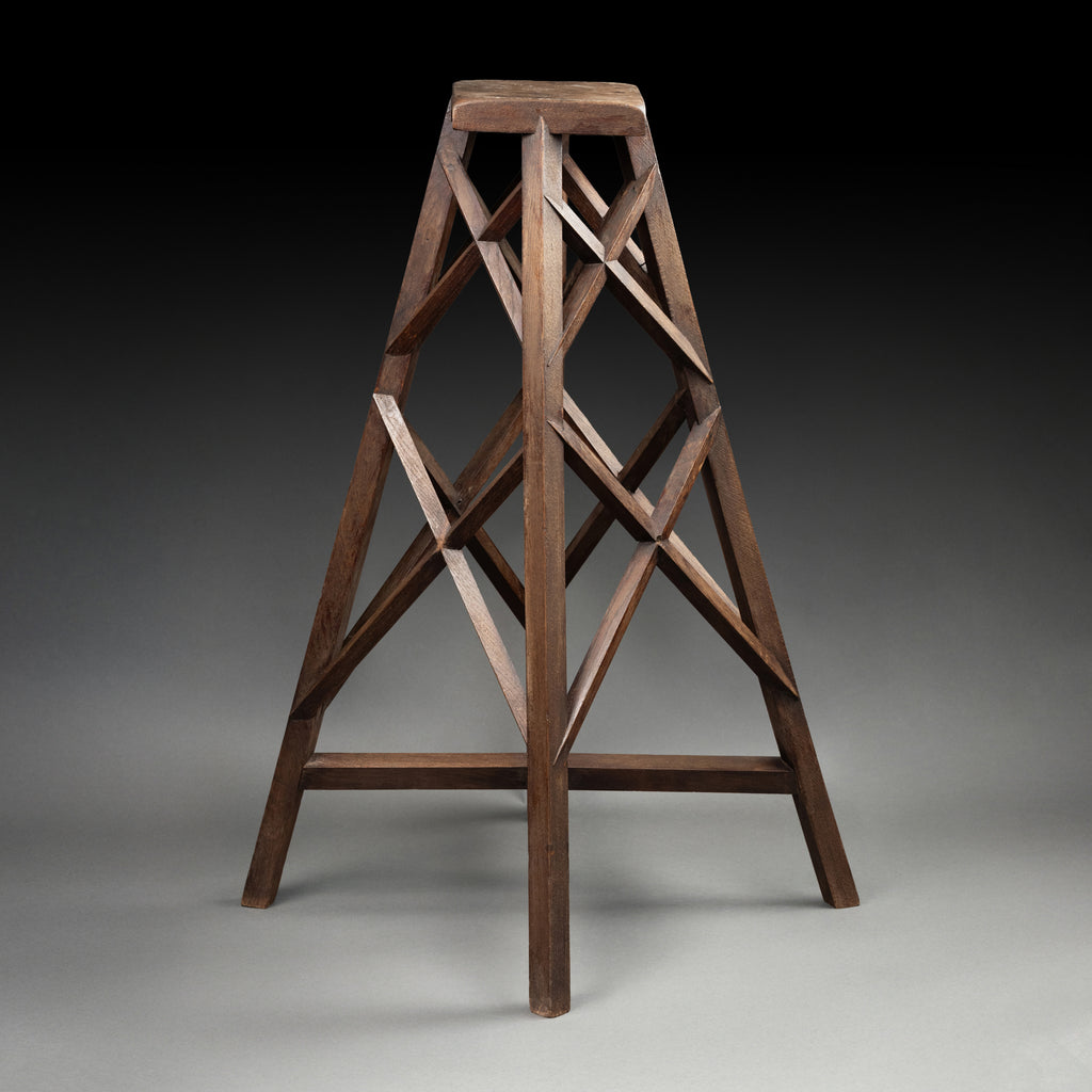 Selette à 4 pieds en bois sculpté, croissillons et entretoises