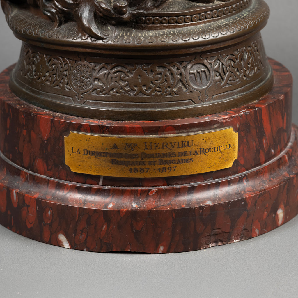 Monté sur une base tournante en marbre rond. Plaque commémorative 'A Mr HERVIEU / la Direction des Douanes de la Rochelle Bureaux et Brigades / 1887-1897).
