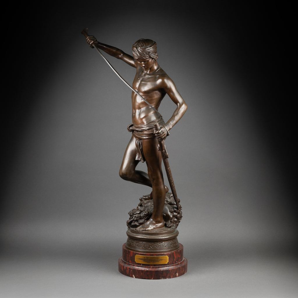 Antonin MERCIE (1845-1916) - David vainqueur de Goliath Bronze fin XIXème, fonte F. Barbedienne.