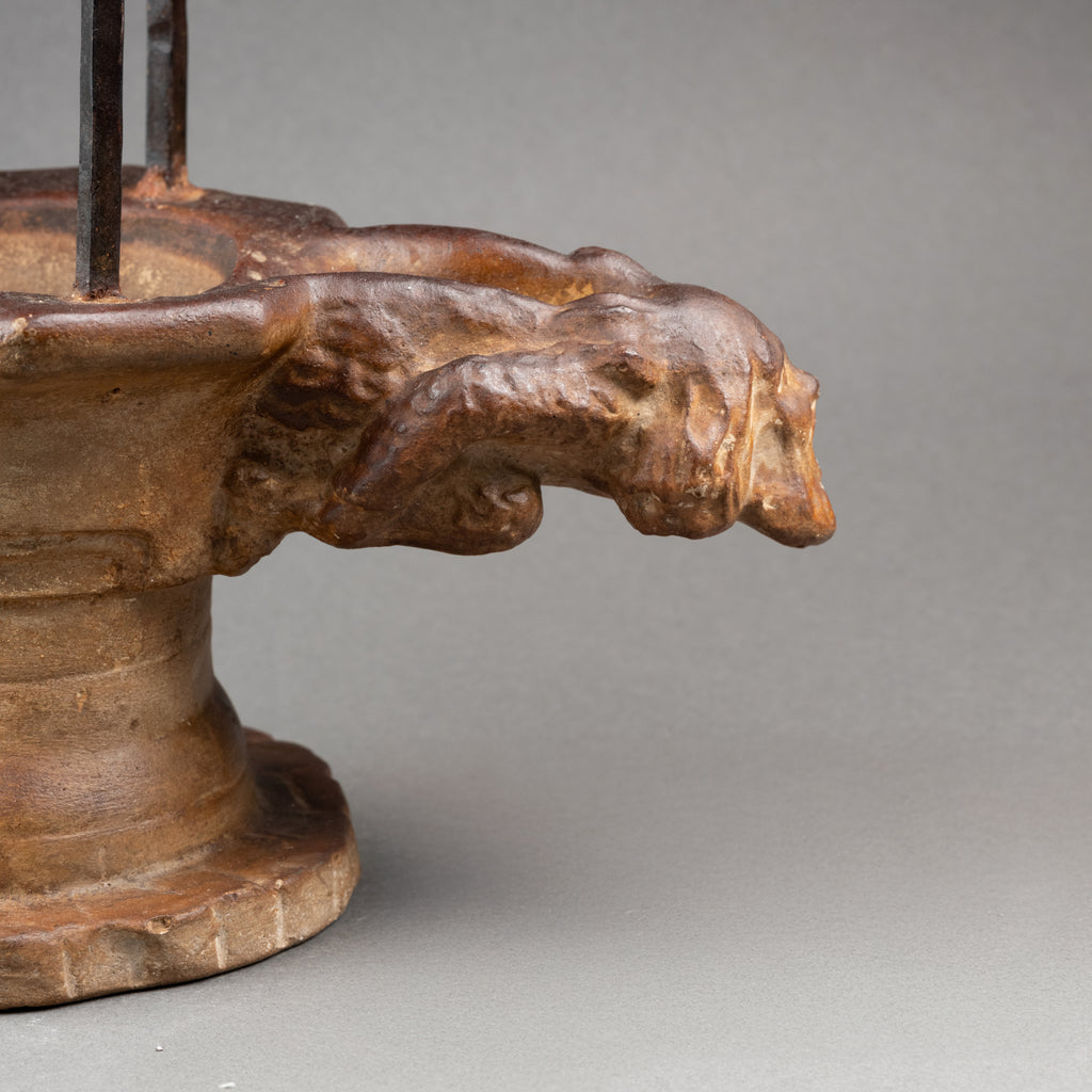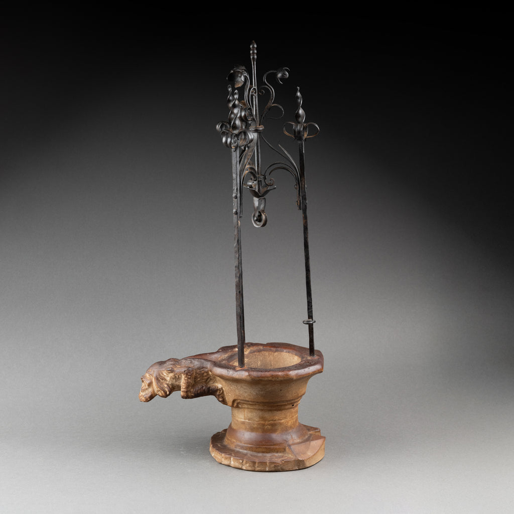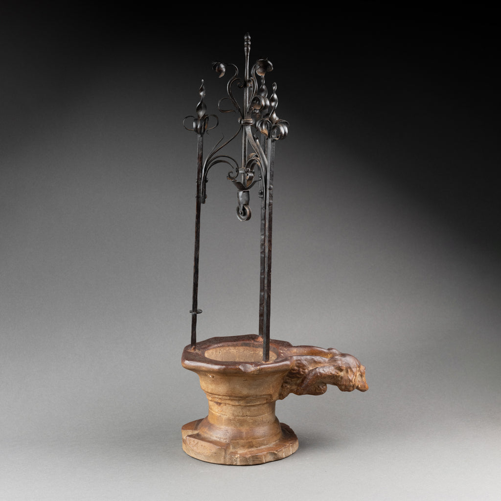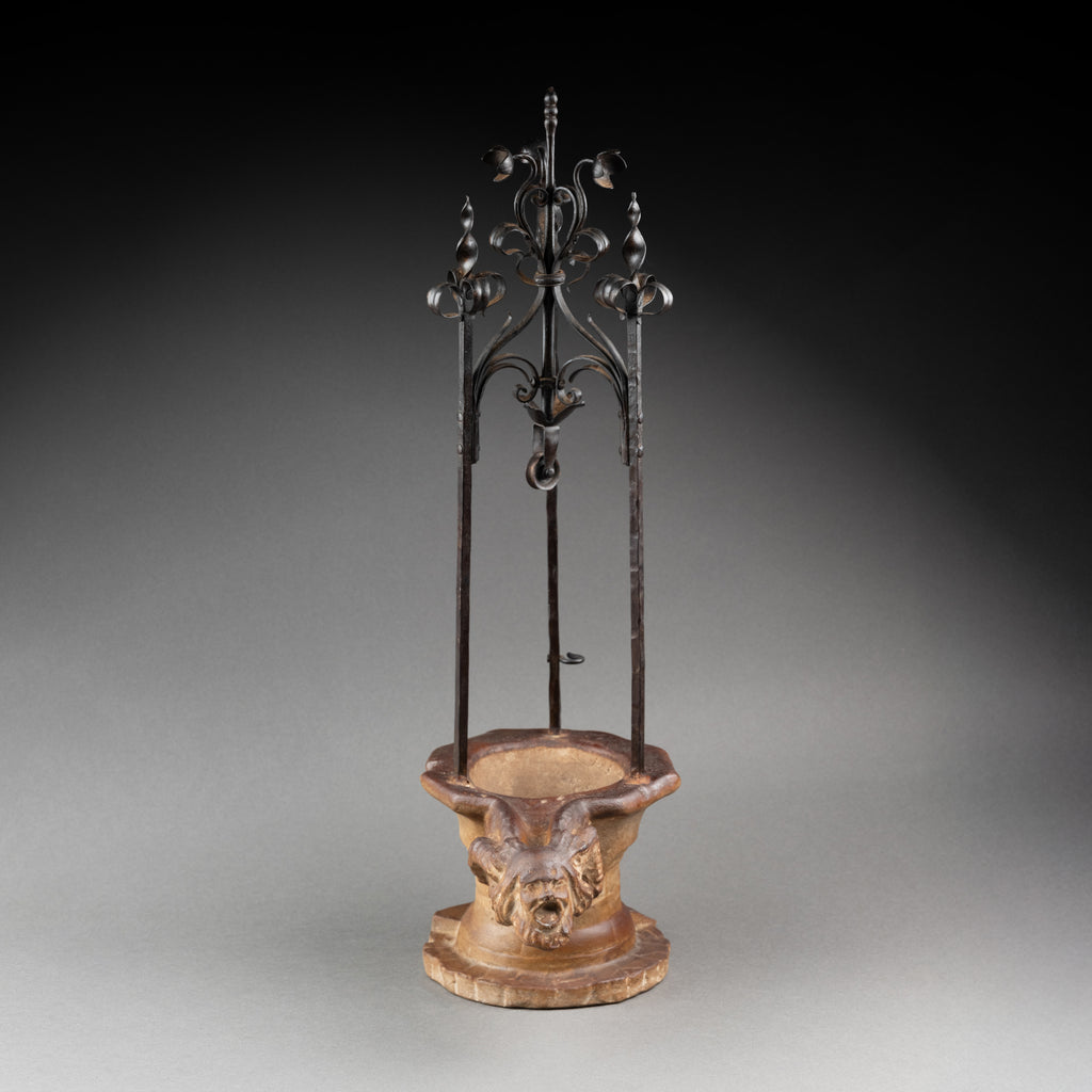 Insolite réduction en plâtre patiné et fer forgé du Puits de l'Hotel de Cluny*, ornementé d'une gargouille d'"homme sauvage"(François Sauvage)*.